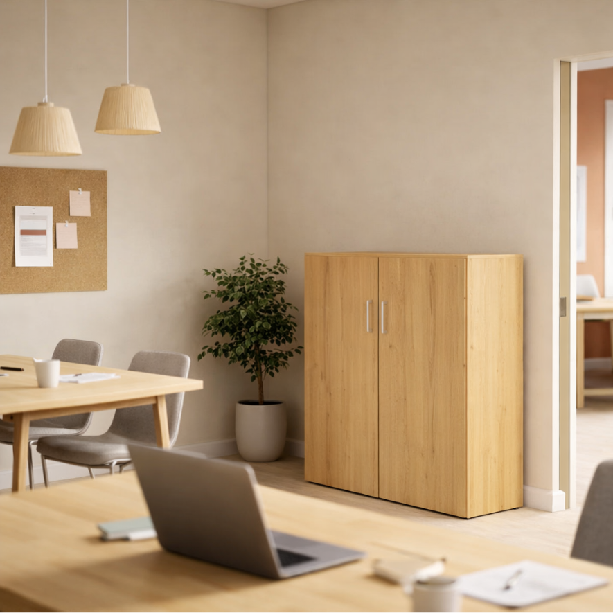 Optimisez votre bureau avec notre Armoire Mi-Haute en Mélaminé, conçue pour s’intégrer parfaitement dans les espaces professionnels modernes. Fabriquée avec soin en France, cette armoire combine élégance et résistance, offrant une solution de rangement durable pour tout bureau.