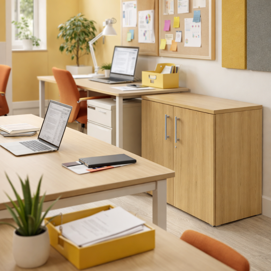 Optimisez votre environnement de travail avec notre Desserte Hauteur Bureau en Mélaminé, conçue pour s’intégrer harmonieusement dans les espaces professionnels. Fabriquée avec soin en France, cette desserte combine parfaitement praticité et élégance, offrant une solution de rangement accessible tout en embellissant votre bureau.