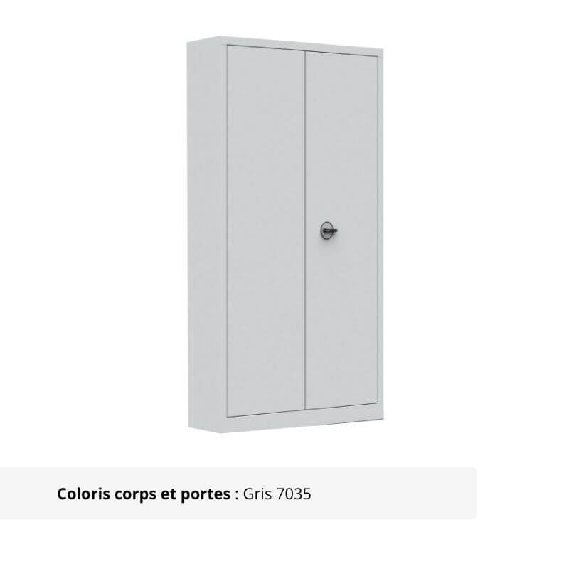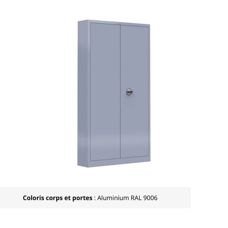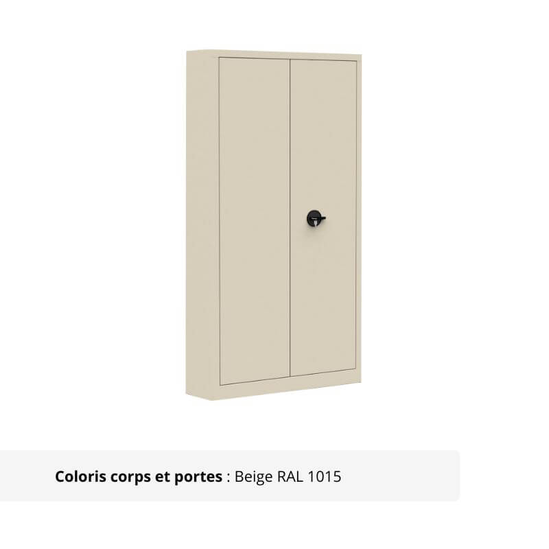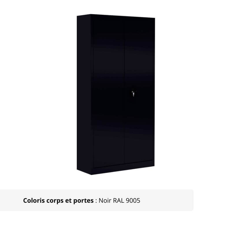 - Les tablettes sont dans le coloris du corps de l’armoire pour les coloris Gris Perle, Noir, Blanc et Aluminium. Pour les armoires Beige et Gris Anthracite 7016, les tablettes sont Noir.
