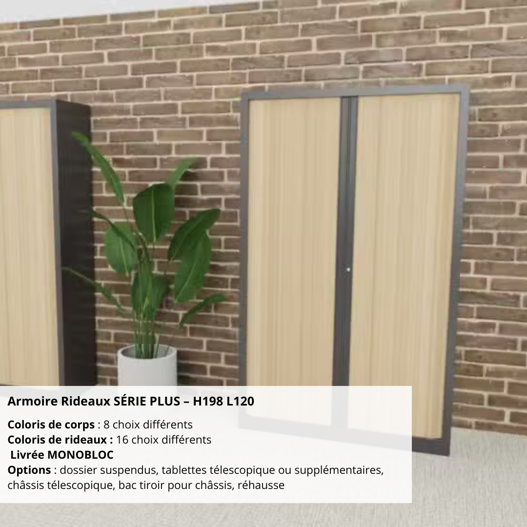 Notre catalogue propose une sélection d’armoires entièrement dédiées à l’armoire de bureau à rideaux. Avec un large choix en termes de taille et de profondeur, vous pouvez profiter d’un espace de rangement qui répond parfaitement à vos attentes.
