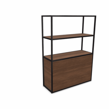 Sa structure tubulaire en acier (25 x 25 mm), déclinée en noir ou blanc époxy, lui assure une excellente stabilité et un design contemporain fluide. Le corps du meuble ainsi que les tablettes sont réalisés en panneaux mélaminés Structurex® d’épaisseur 16 mm, avec chants ABS antichoc, garantissant une bonne tenue dans le temps même en usage intensif.