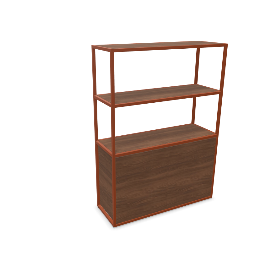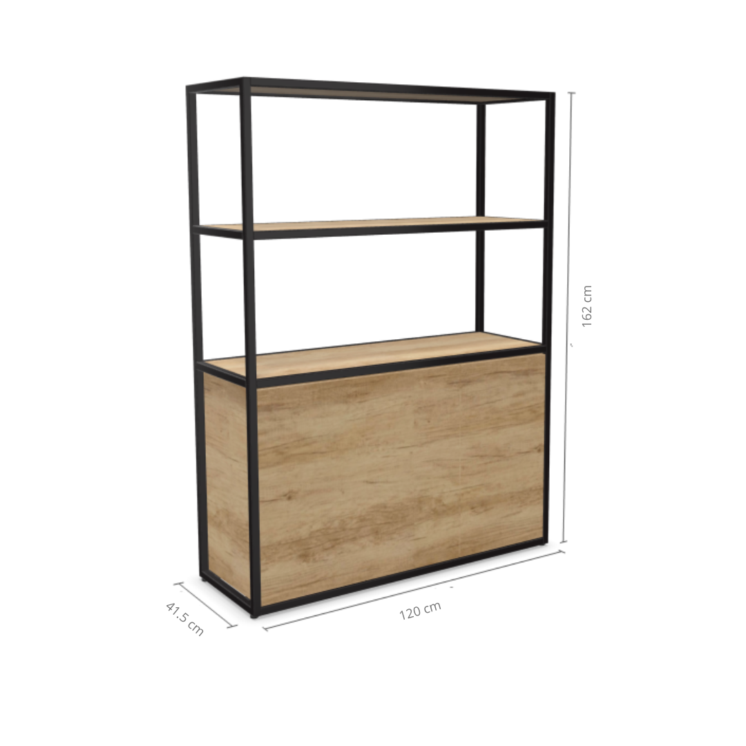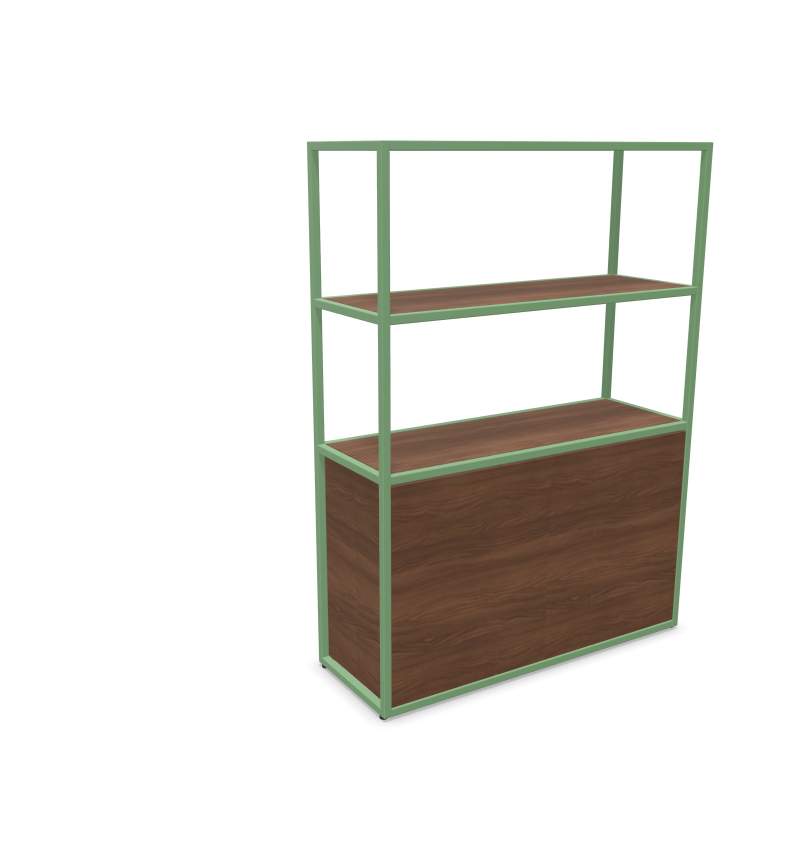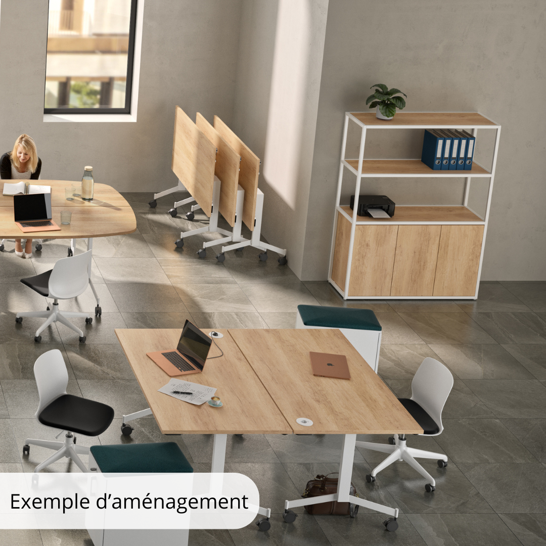 Sa structure tubulaire en acier (25 x 25 mm), déclinée en noir ou blanc époxy, lui assure une excellente stabilité et un design contemporain fluide. Le corps du meuble ainsi que les tablettes sont réalisés en panneaux mélaminés Structurex® d’épaisseur 16 mm, avec chants ABS antichoc, garantissant une bonne tenue dans le temps même en usage intensif.