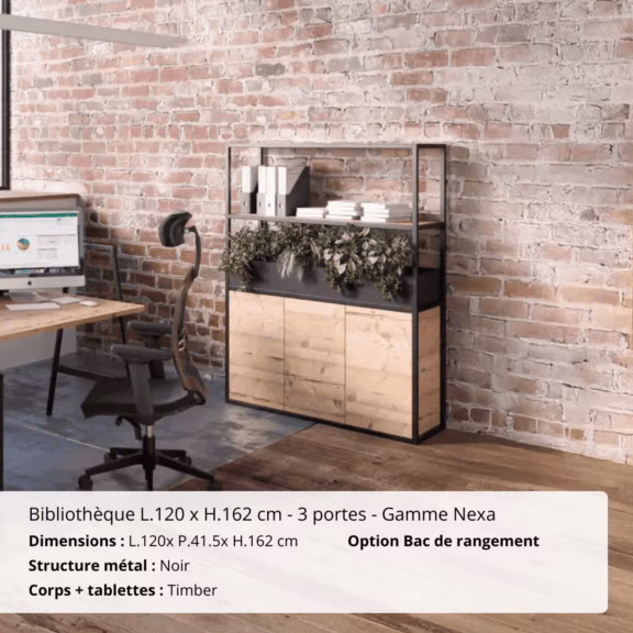 Esthétique, spacieuse et durable, cette bibliothèque 3 portes est un atout pour organiser vos documents tout en valorisant votre espace de travail avec élégance.