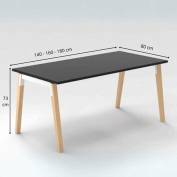 Disponible en trois dimensions : 140, 160 ou 180 cm, le bureau s’intègre parfaitement dans les espaces tertiaires ou techniques. Sa structure mixte, alliant robustesse métallique et finition bois chaleureuse, garantit une excellente stabilité et une esthétique moderne.