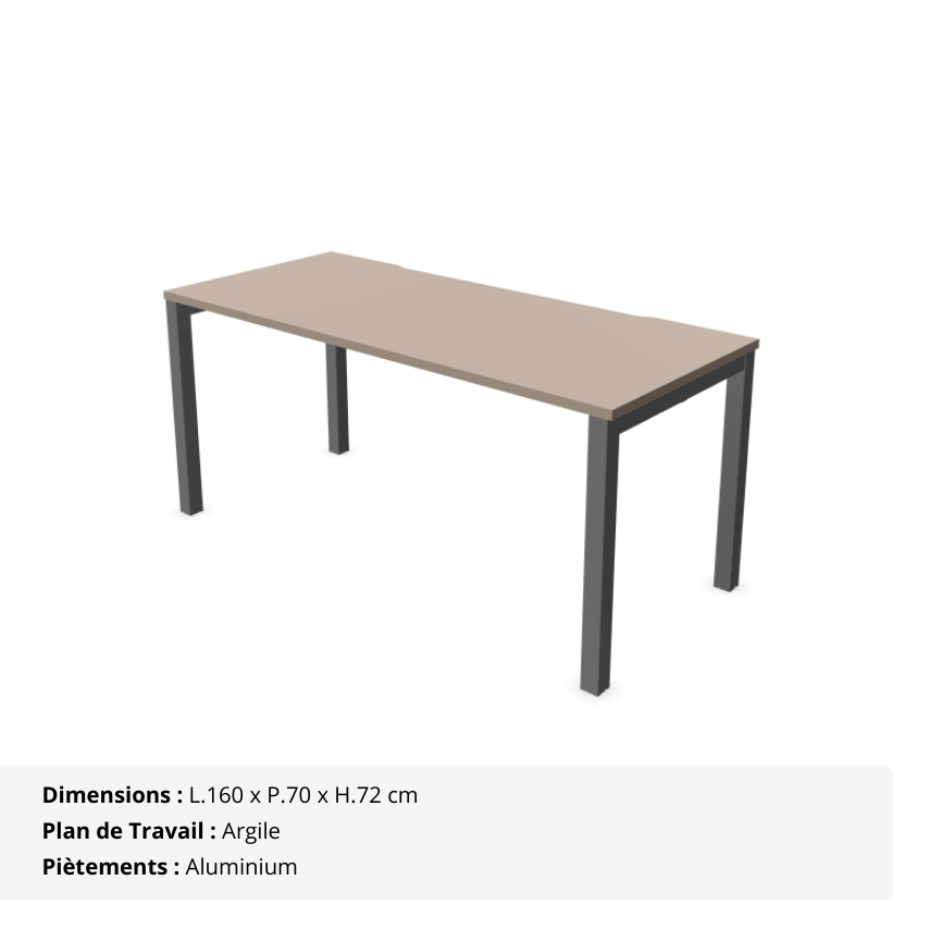 Ce bureau individuel combine esthétique contemporaine, solidité et confort d’utilisation. Proposé en plusieurs longueurs et en deux profondeurs (70 ou 80 cm), il s’adapte à vos besoins et à la configuration de votre espace professionnel.