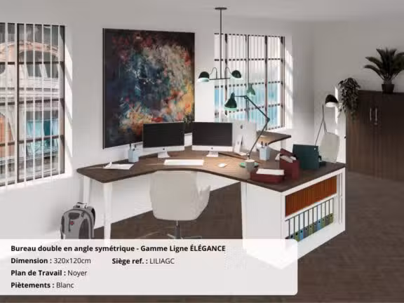 | Type de Bureau | Bureau double d’angle pour 2 personnes. |