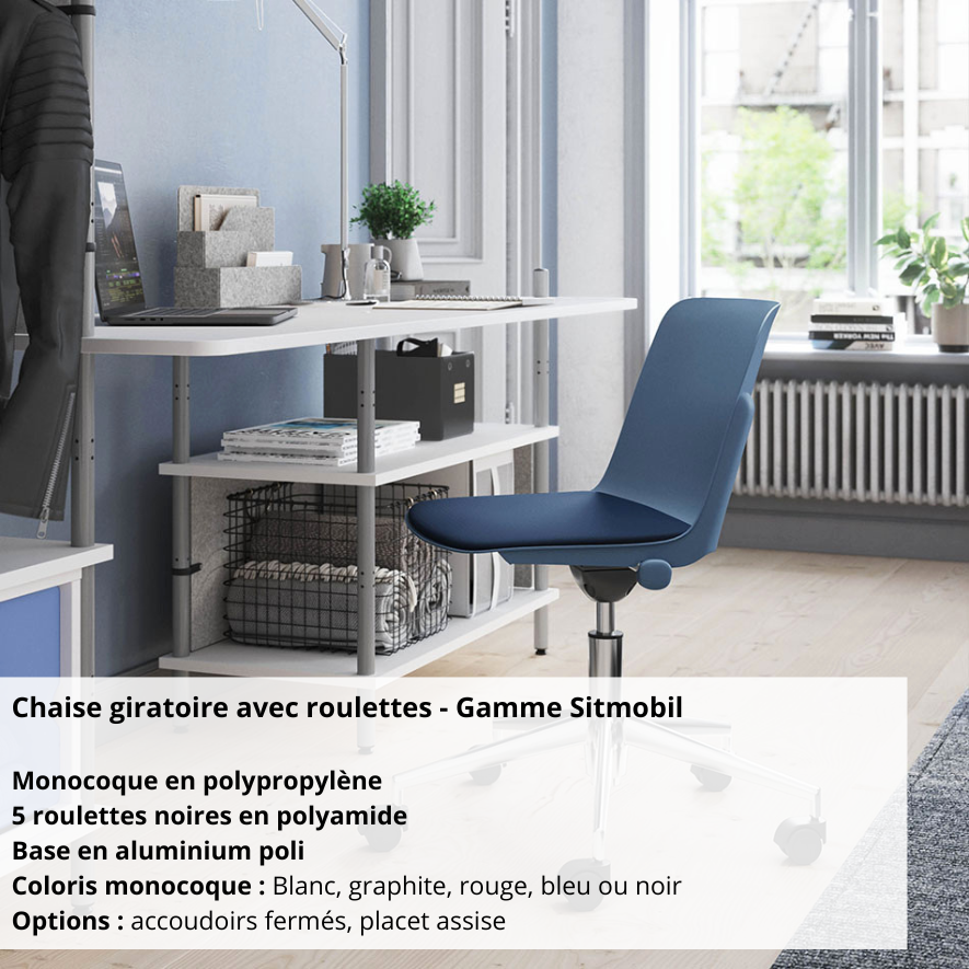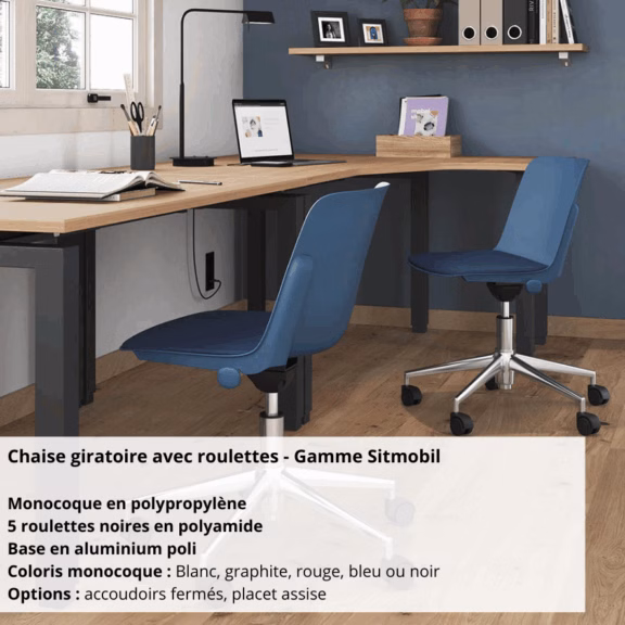 Choisir la chaise giratoire avec roulettes – Gamme Sitmobil, c’est investir dans un mobilier ergonomique, fonctionnel et résistant, pensé pour accompagner vos activités professionnelles avec efficacité et confort.