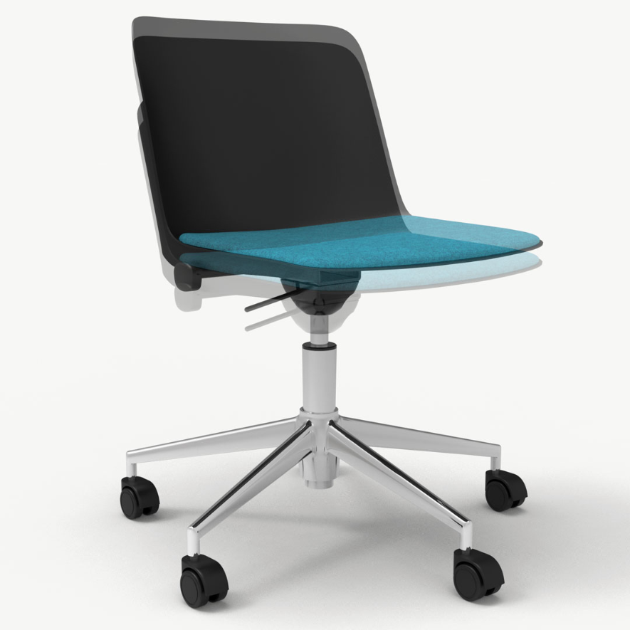 Grâce à son assise pivotante et sa base sur roulettes, Sitmobil offre une liberté de mouvement totale. Les utilisateurs peuvent se déplacer aisément, changer de position ou interagir sans contrainte, rendant les espaces plus dynamiques et collaboratifs.