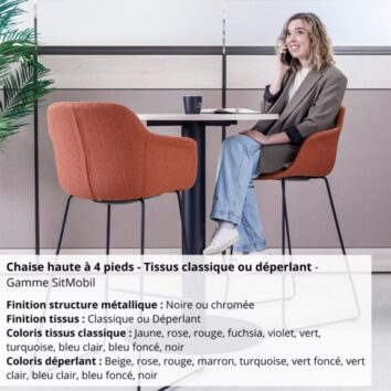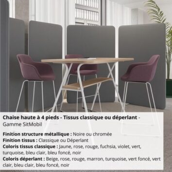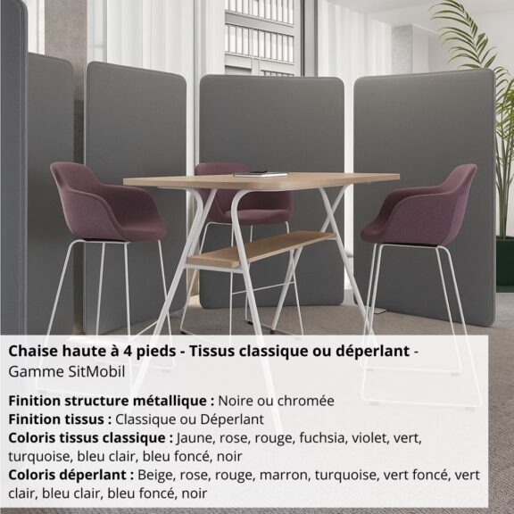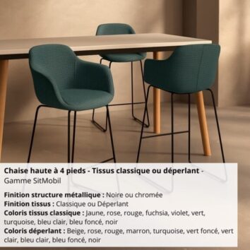 Chaise haute à 4 pieds – Gamme SitMobil : élégance sobre et confort textile pour vos espaces collaboratifs