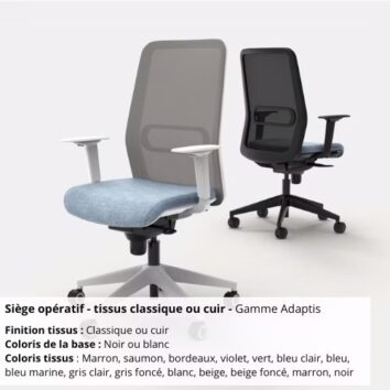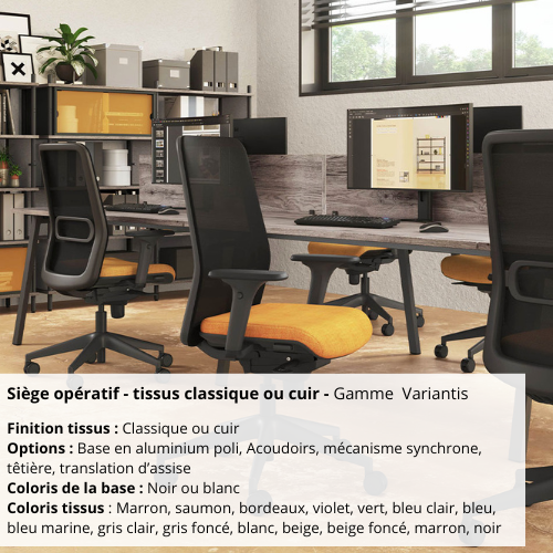 Siège opératif – Tissu ou cuir – Gamme Variantis : confort et robustesse pour un usage intensif au bureau