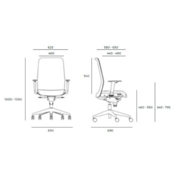 Son mécanisme synchrone autorégulé, avec blocage multipositions, encourage une posture dynamique et saine. Il est équipé d’un soutien lombaire réglable en hauteur et d’accoudoirs ergonomiques, pour un confort personnalisé tout au long de la journée. Le piètement en nylon renforcé à cinq branches garantit une parfaite stabilité.