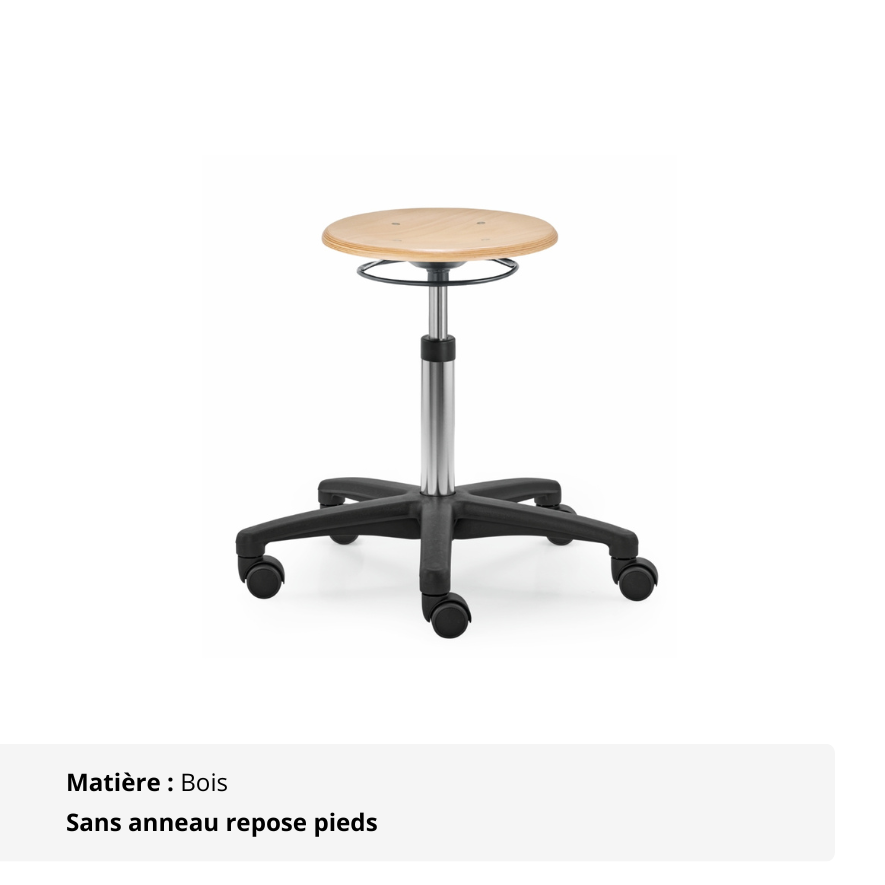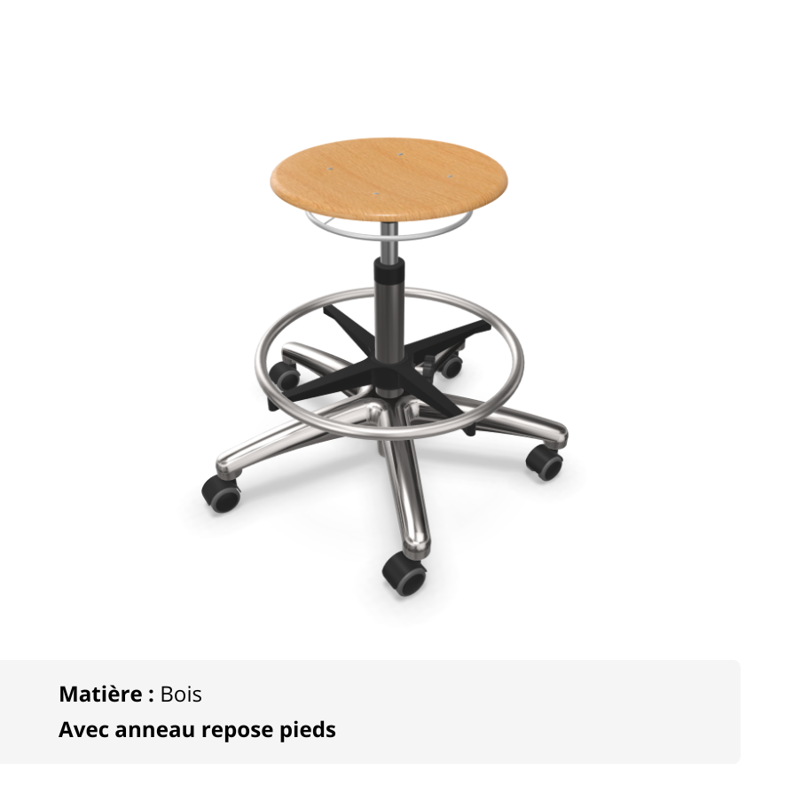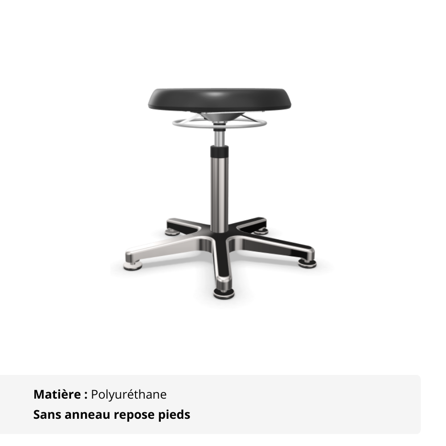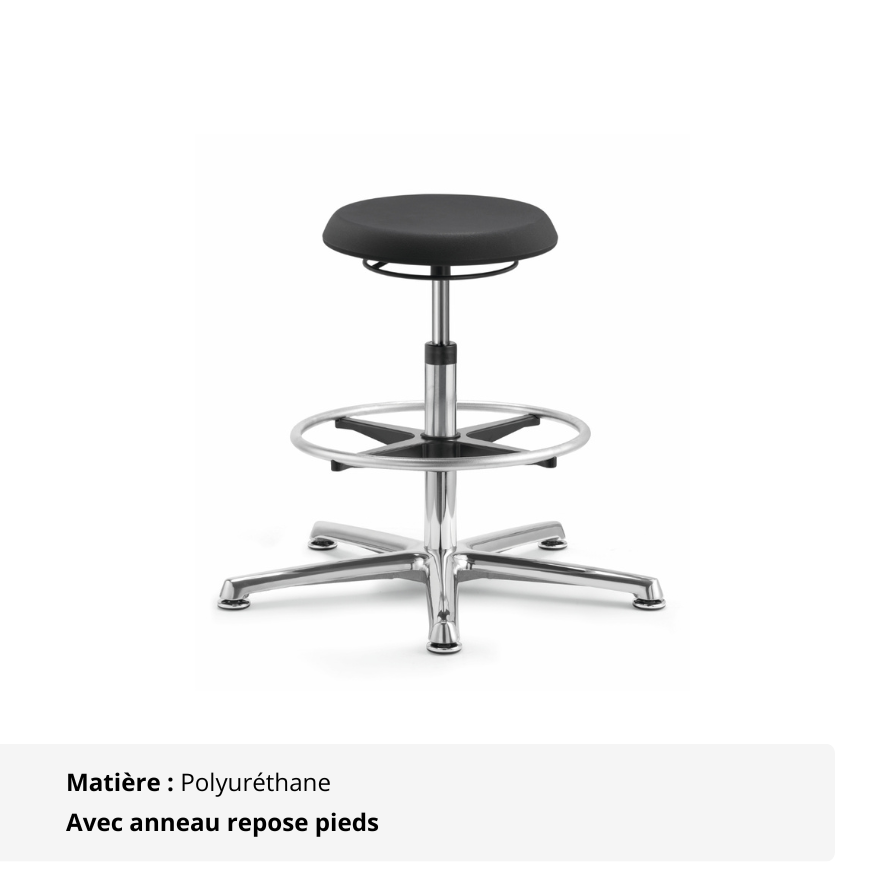Disponible avec ou sans repose-pieds, il répond aux besoins des postes de travail standards comme en hauteur. Pour plus de confort, un accoudoir est disponible en option, permettant un soutien supplémentaire lors des tâches prolongées.