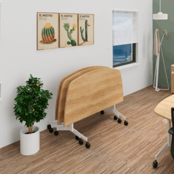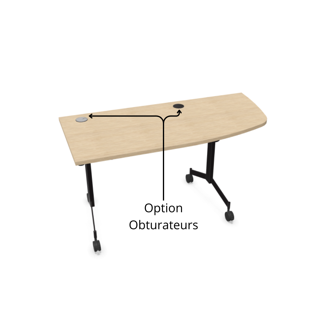 Pensée pour s’intégrer dans des configurations modulaires, cette table abattante avec angle intégré est idéale pour compléter une ligne de tables, créer des compositions originales ou aménager des espaces de réunion plus fluides. Avec son côté incurvé orienté à gauche ou à droite, elle apporte une dynamique visuelle tout en conservant un excellent niveau de fonctionnalité.
