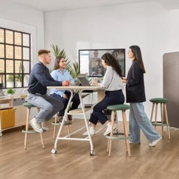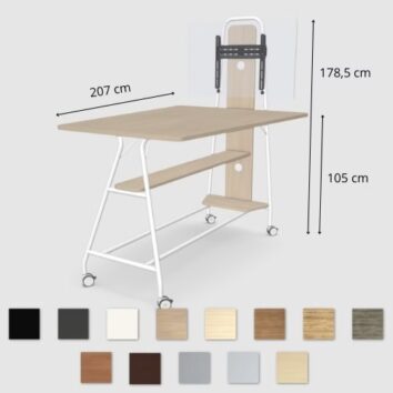 Pensée pour accompagner les nouvelles pratiques de collaboration en entreprise, la Table média à roulettes s’impose comme la solution idéale pour organiser des réunions hybrides, des sessions de formation ou des présentations interactives.