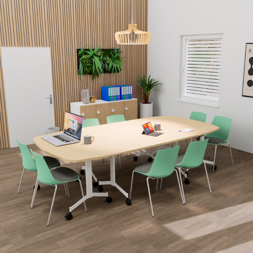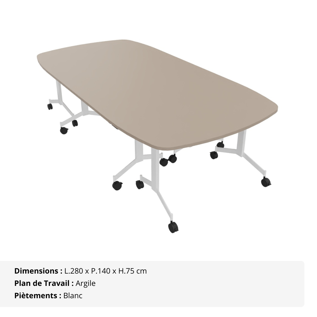 Alliant modularité, design et praticité, cette table de réunion ovale abattante est conçue pour les environnements professionnels où l’espace doit s’adapter aux usages. Sa forme ovale accueillante permet de réunir jusqu’à 10 personnes dans une ambiance fluide et collaborative, tout en offrant une solution mobile et facilement reconfigurable.