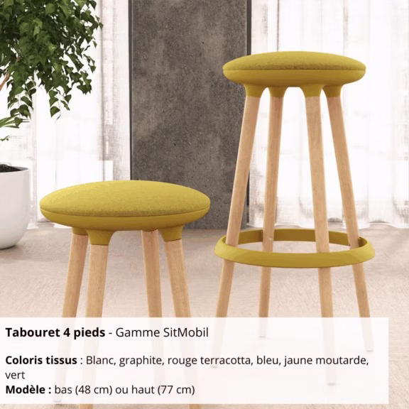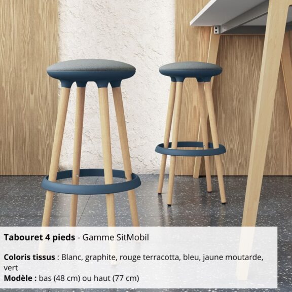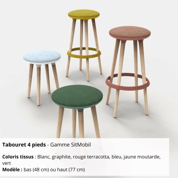 Tabouret 4 pieds – Gamme SitMobil : stabilité, confort et élégance pour vos espaces collaboratifs