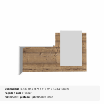 Accueille tes visiteurs avec élégance et accessibilité grâce à cette banque d’accueil pensée pour allier design contemporain, fonctionnalité et inclusivité. Son parement épais et structuré, taillé avec précision en coupe d’onglet à 45°, offre une tablette d’accueil spacieuse et raffinée qui met tout de suite à l’aise.