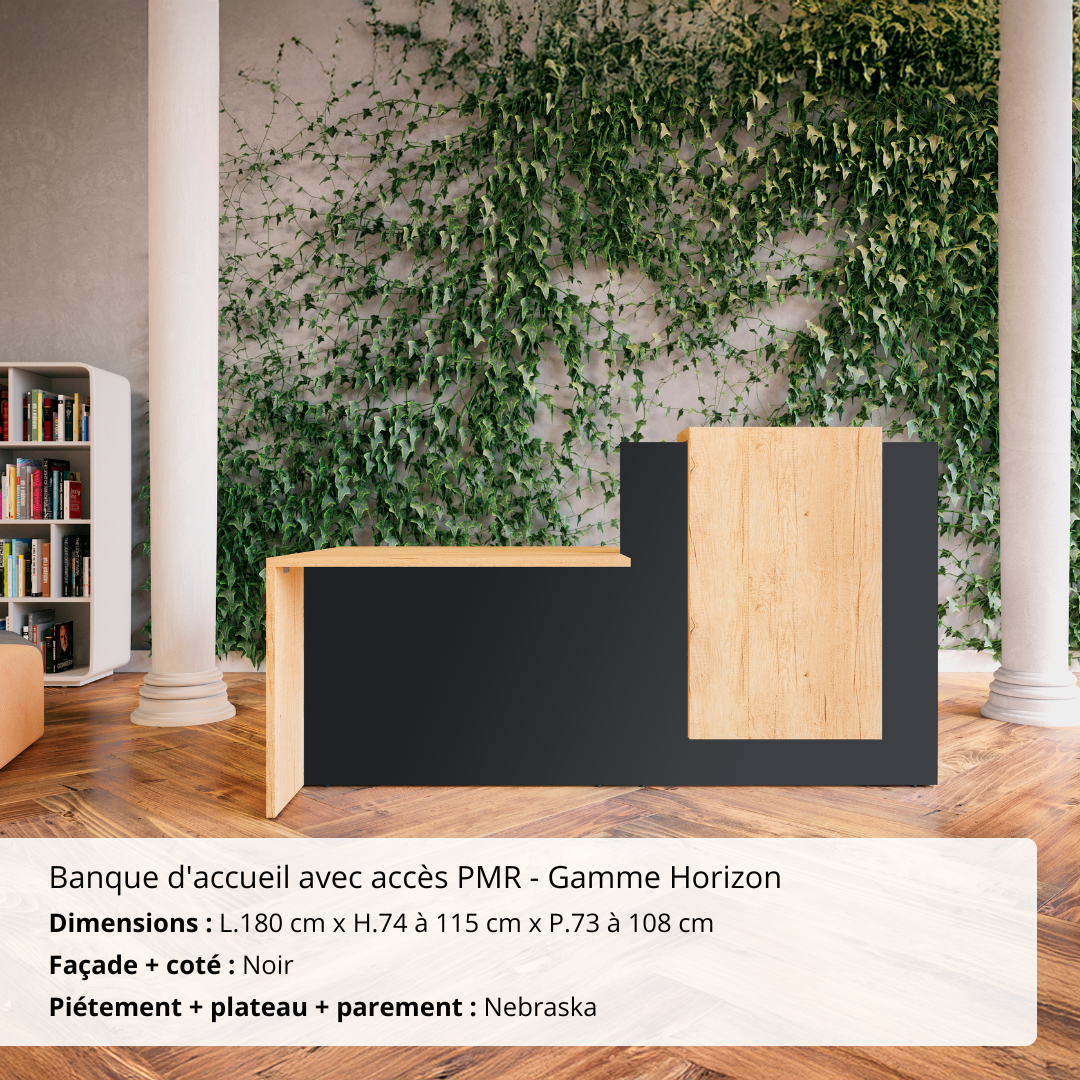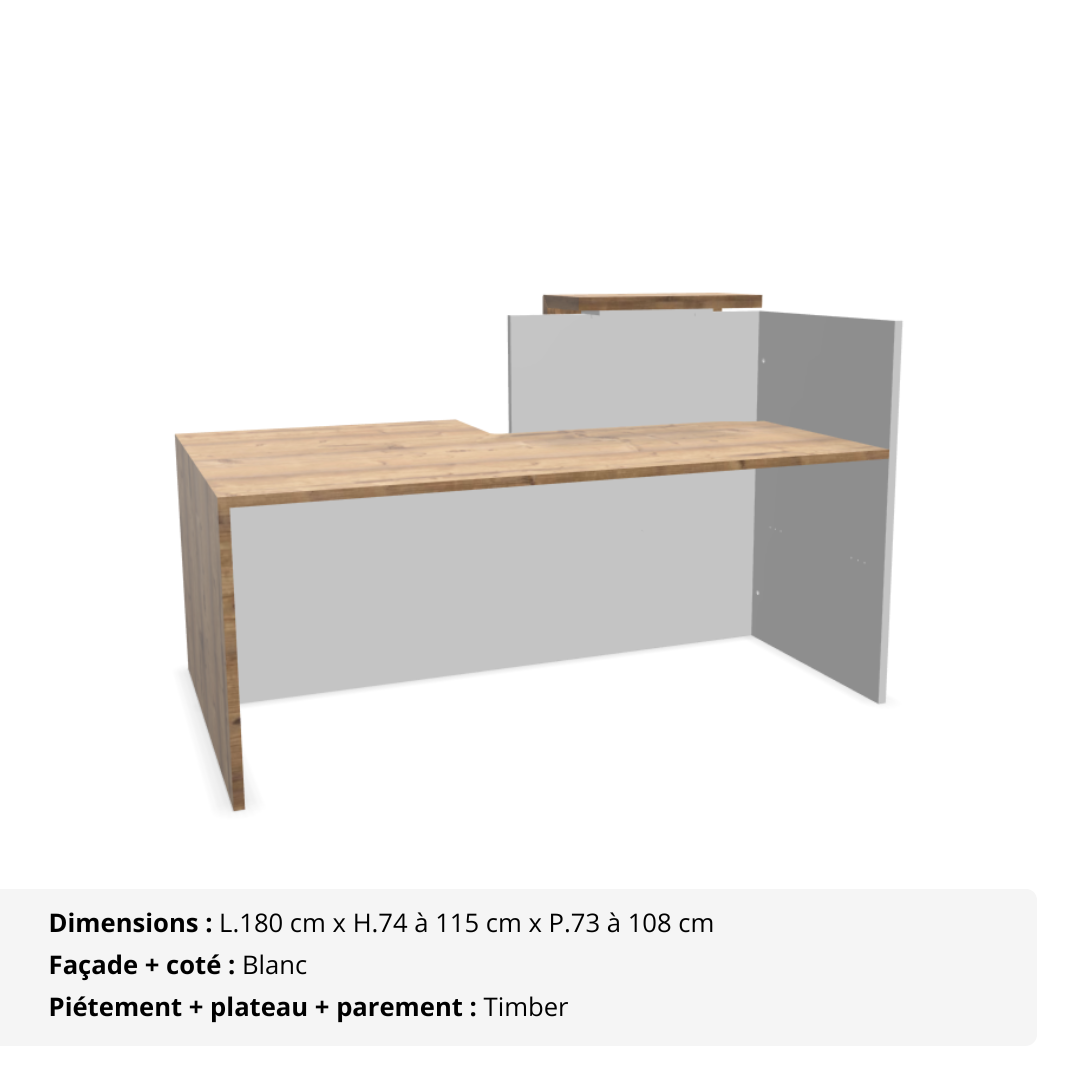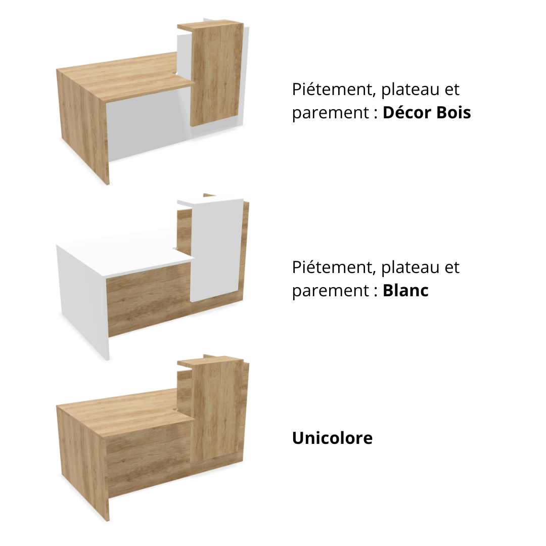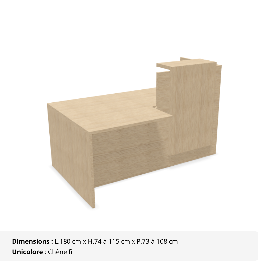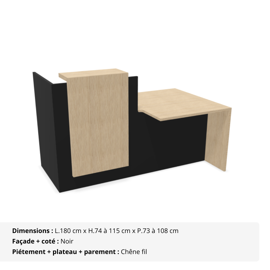 Accueille tes visiteurs avec élégance et accessibilité grâce à cette banque d’accueil pensée pour allier design contemporain, fonctionnalité et inclusivité. Son parement épais et structuré, taillé avec précision en coupe d’onglet à 45°, offre une tablette d’accueil spacieuse et raffinée qui met tout de suite à l’aise.