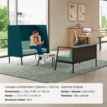 Créez des espaces intimes et confortables avec ce canapé confidentiel, pensé pour associer esthétique, confort et discrétion. Sa conception associe un design moderne et des matériaux de qualité, parfaits pour les environnements professionnels, les espaces d’accueil ou de détente.