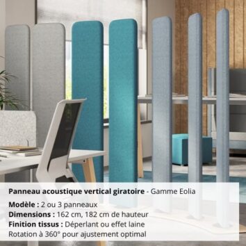 Panneau acoustique vertical giratoire – Gamme Eolia : une solution flexible et élégante pour le confort sonore au bureau