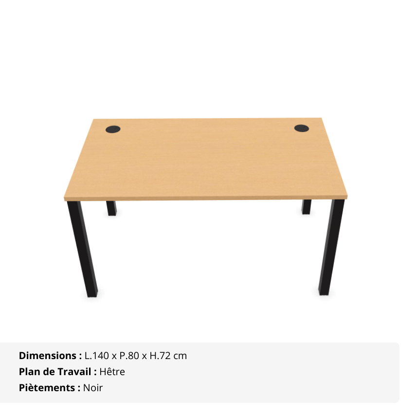 Le plateau en mélaminé Structurex® de 25 mm d’épaisseur, avec chants ABS anti-choc 2 mm, assure une grande résistance aux usages intensifs tout en conservant une finition soignée. Les obturateurs Ø 80 mm intégrés facilitent le passage des câbles et garantissent une organisation optimale de votre poste de travail.