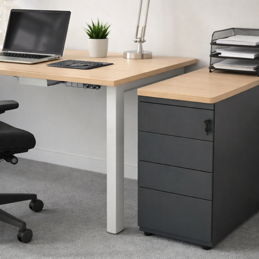 - Tiroir dossiers suspendus sur glissières télescopiques à extraction totale (profondeur 70 cm pour le caisson pf.80 cm). Coulissement sur glissières à billes. Ce tiroir est équipé d’une roulette (système antibasculant). Volume de classement : 60 dossiers (2 rangées de DS, accès frontal ou latéral)