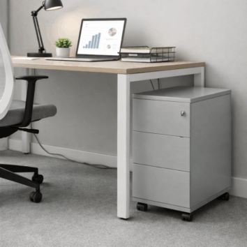 - 4 Roulettes multidirectionnelles diamètre 40mm, dont 2 freinées. Le tiroir double est doté d’une 5ème roulette