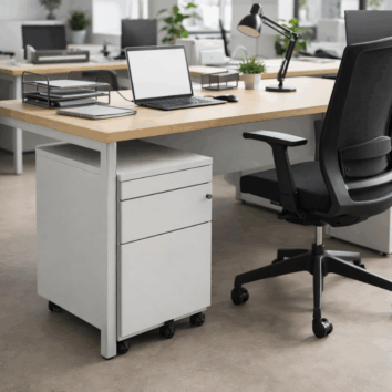 - 4 Roulettes multidirectionnelles diamètre 35mm, dont 2 freinées. Le tiroir pour dossiers suspendus est doté d’une 5ème roulette