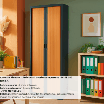 Notre catalogue propose une sélection d’armoires dédiées à l’armoire de bureau à rideaux. Avec un choix important en termes de taille et de profondeur, vous pouvez profiter d’un espace de rangement qui répond parfaitement à vos attentes. Chaque armoire metallique proposée sur notre site répond à plusieurs normes et certifications propres au mobilier de bureau professionnel et atteste de leur qualité pouvant résister à 40 000 cycles d’ouverture et fermeture.