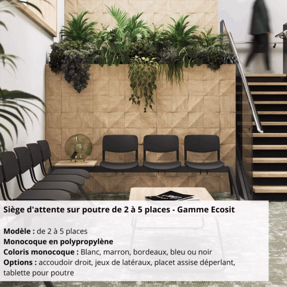 Les sièges Ecosit sur poutre sont la solution parfaite pour conjuguer esthétique, confort et durabilité, tout en restant économiques et adaptés aux espaces publics et professionnels.