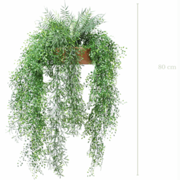 Avec son envergure de 37 cm, La Grande Tombante est idéale pour agrémenter une table d’appoint, un coin de comptoir ou une étagère. Grâce à la conception artificielle, vous bénéficiez d’une solution végétale sans aucune contrainte d’entretien : pas d’arrosage, pas de lumière spécifique requise. Les dimensions fournies sont approximatives, témoignant du caractère artisanal de ce produit.