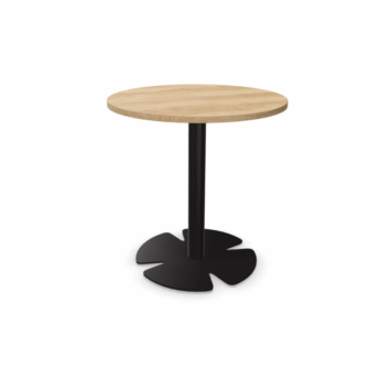 Son plateau rond de 60 cm en panneau mélaminé (épaisseur 16 mm) est bordé de chants ABS anti-choc, pour un usage quotidien en toute tranquillité. Le piétement central en tube d’acier Ø 60 mm, associé à une base quadrilobe en métal Ø 440 mm, assure une stabilité parfaite, sans alourdir l’ensemble visuellement.