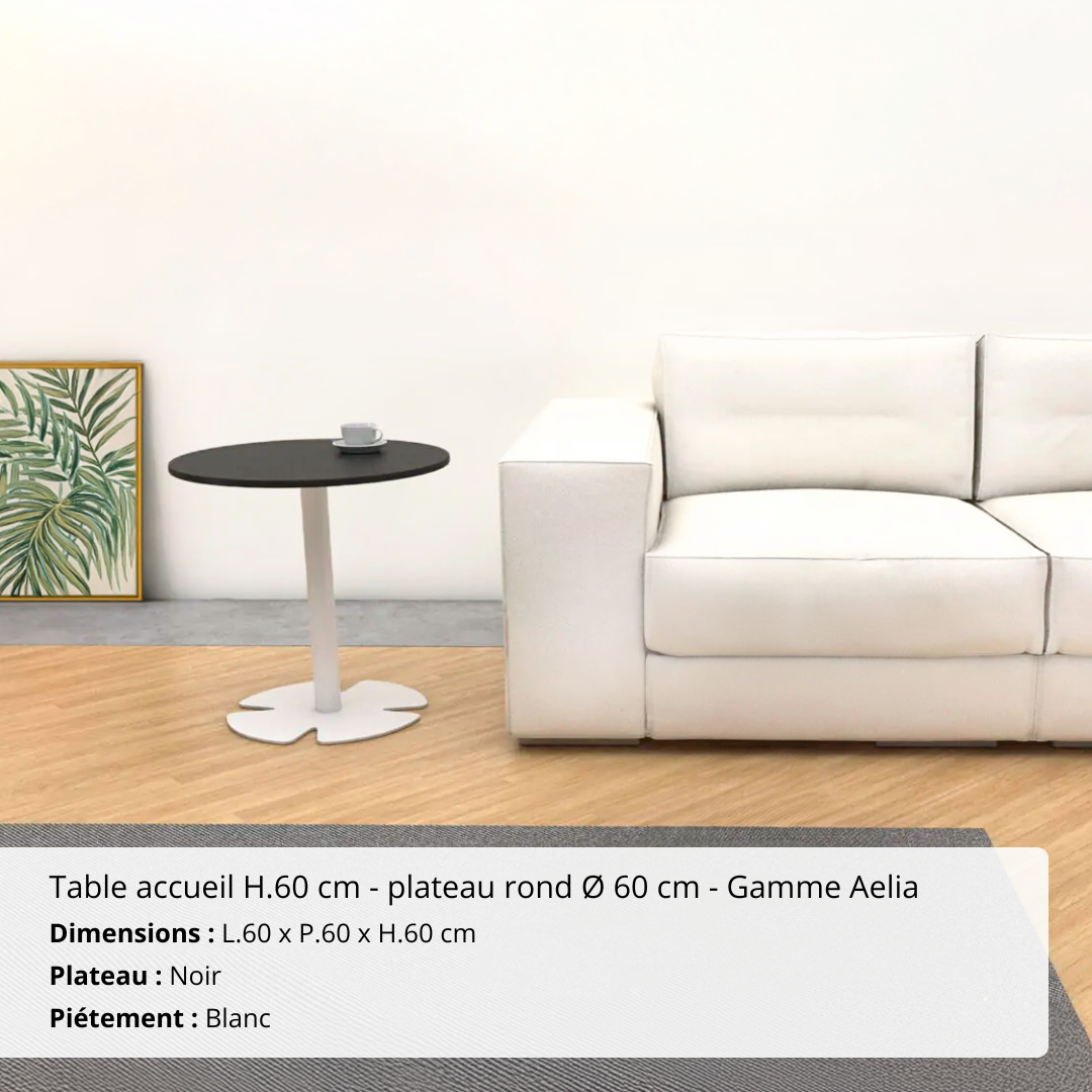 Cette table d’appoint H.60 cm – Ø 60 cm est le compagnon idéal de vos espaces d’accueil, coins lecture ou zones informelles. Avec sa hauteur intermédiaire, elle s’adapte aussi bien aux fauteuils qu’aux assises lounge, offrant une surface fonctionnelle tout en restant légère et peu encombrante.