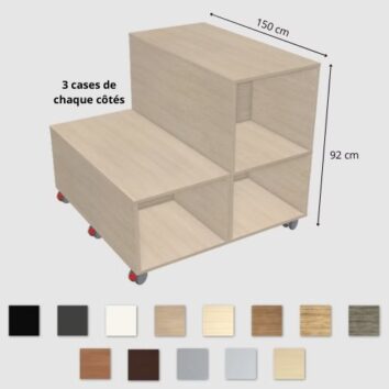 Disponibles en modules droits et à 90°, ils permettent de créer des configurations variées et d’optimiser l’agencement de votre espace. Polyvalents, ils peuvent être utilisés comme espace de réunion, zone de stockage ou séparateur d’ambiance, tout en intégrant des rangements pratiques pour des sièges, tables d’appoint et autres accessoires.