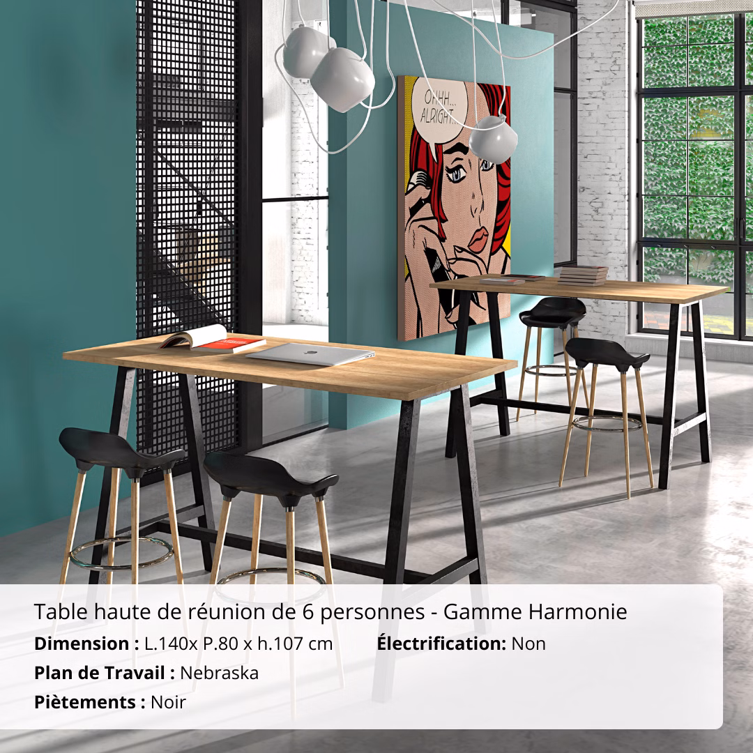 Table haute de réunion de 6 personnes L. 140 x P. 80 cm - Gamme Harmonie