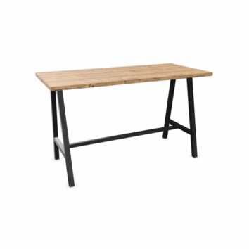 Son piétement métal de section carrée 50 × 50 mm en arche « A » repose sur une structure poutre en acier laqué époxy, lui conférant une stabilité remarquable. Une barre repose-pieds en acier (40 × 40 mm) est intégrée pour offrir un maintien confortable lors des réunions debout. La hauteur sous repose-pieds est d’environ 27 cm, idéale pour relâcher la posture.