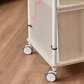 - 4 roulettes pivotantes Ø75 mm adaptées à tous types de sols