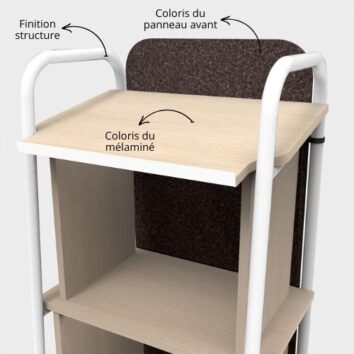- Panneau frontal disponible en plusieurs finitions : mélaminé, PET recyclé ou méthacrylate (PET et méthacrylate sur devis)