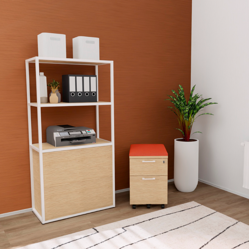 Disponible avec des poignées Classiques ou Design en aluminium, blanc ou noir, ce caisson s’adapte à toutes les ambiances, pour un bureau toujours ordonné et élégant, sans compromis sur la praticité.