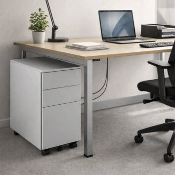 Ce caisson 3 tiroirs dispose d’un large tiroir permettant de recevoir des dossiers suspendus. Les deux petits tiroirs permettent l’entreposage des affaires personnelles.