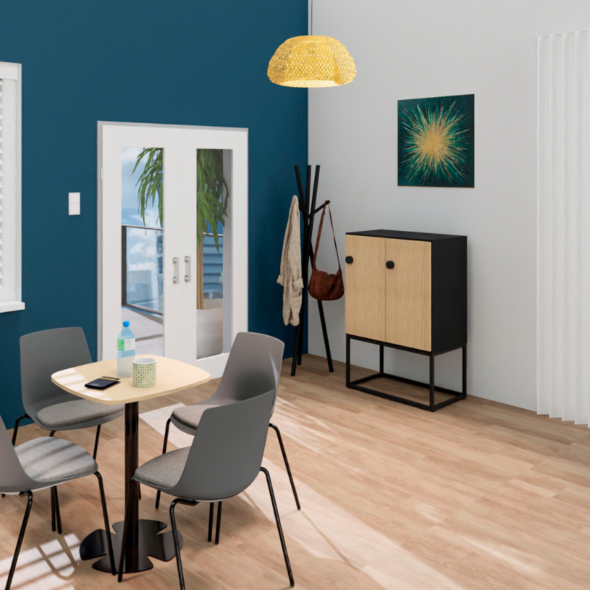 Sa structure en panneaux mélaminés Structurex® de 16 mm, associée à des chants ABS anti-choc, garantit une excellente résistance aux chocs et à l’usure, même dans les environnements les plus exigeants comme les ateliers, les vestiaires d’entreprise ou les espaces collectifs.