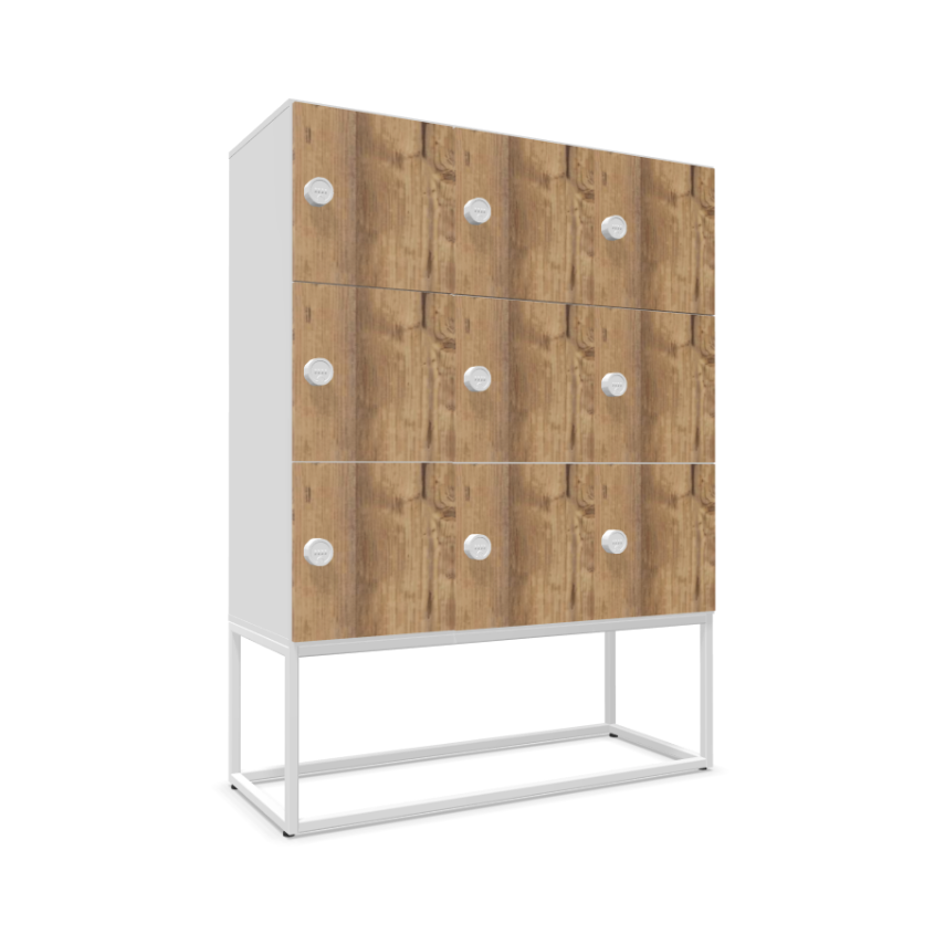 Sa structure est fabriquée en panneaux mélaminés Structurex® de 16 mm, avec des chants ABS 2 mm pour une résistance renforcée aux chocs et aux frottements. Chaque compartiment offre un espace personnel fermé, accessible par une serrure à code, en mode privé ou public ou par une serrure à clé selon vos usages.