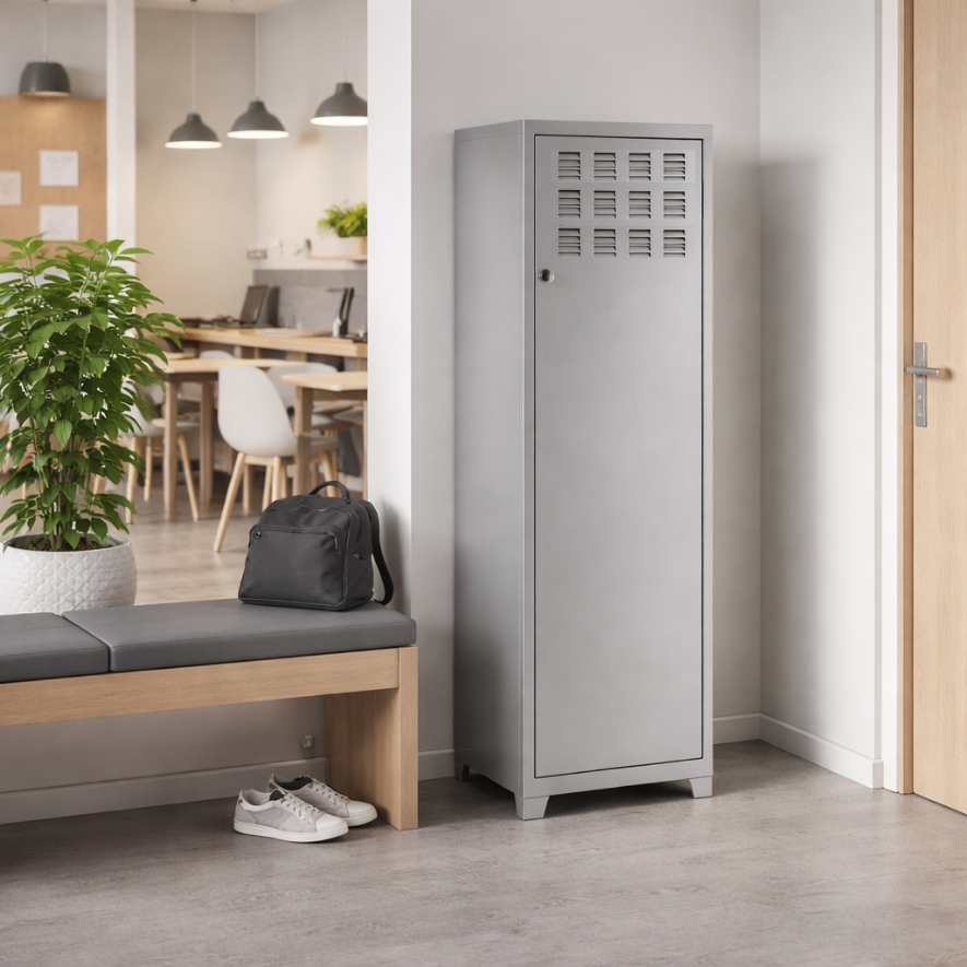 Mini Casier livré MONOBLOC (déjà monté) – Serrure à 2 clés – Tôle épaisseur 0.6mm – Revêtement époxy particulièrement résistante aux rayures.