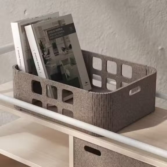 Ajoutez une touche de praticité avec le panier de la série Esmou, fabriqué en PET 100 % recyclé et recyclable. Ce complément discret et fonctionnel s’intègre dans l’espace creux du pupitre et permet de ranger vos effets personnels ou accessoires en toute simplicité.