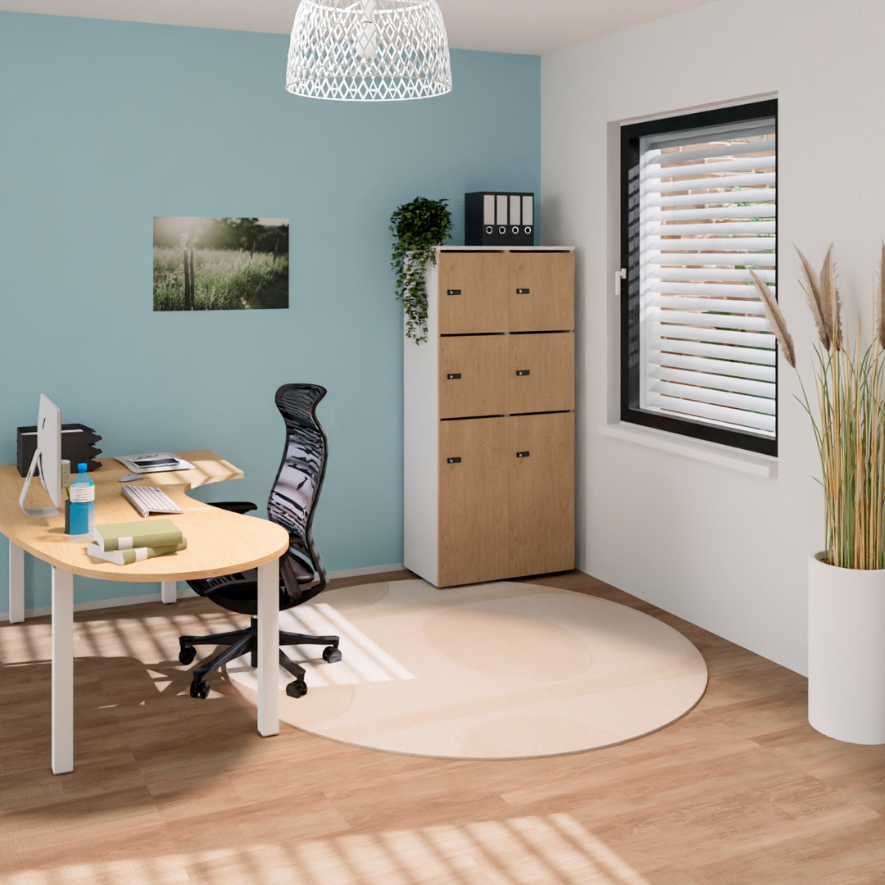 Découvrez nos casiers en mélaminé, conçus pour optimiser l’organisation de votre espace de travail. Avec une structure robuste, ils comportent deux colonnes, une porte double et deux portes simples pour un rangement efficace. Idéaux pour un environnement professionnel, ils allient durabilité et design moderne pour votre bureau.