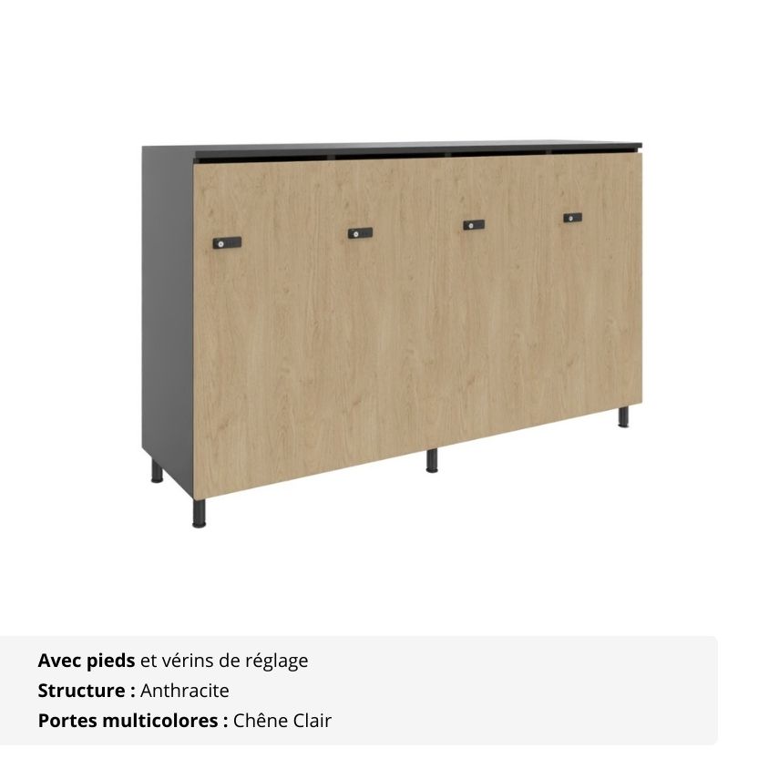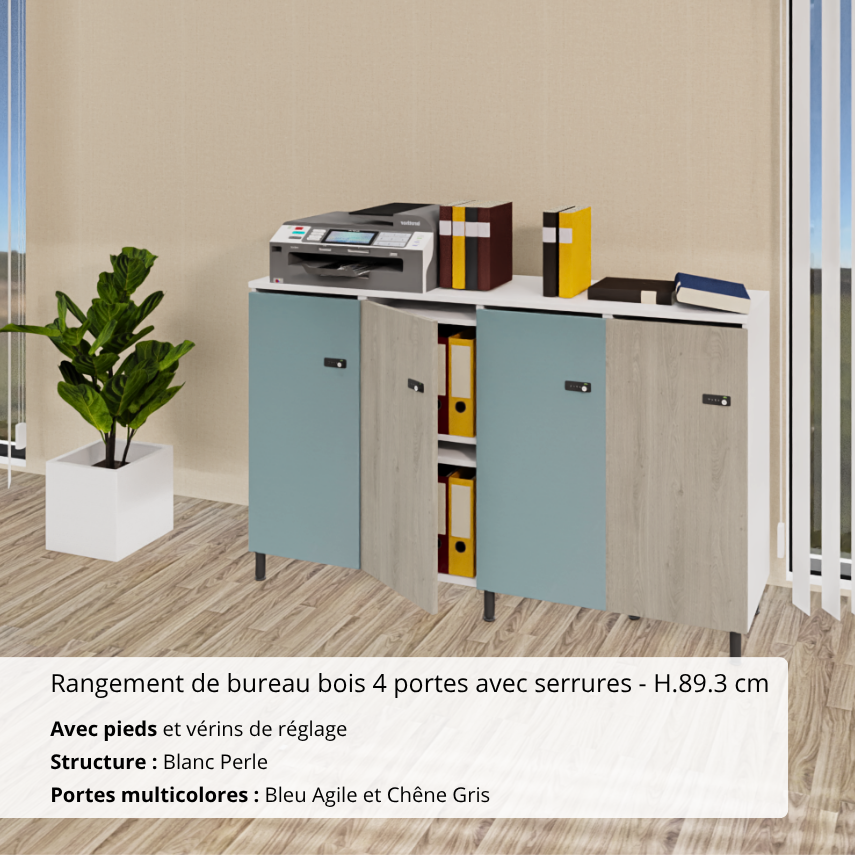 Rangement de bureau bois 4 portes avec serrures