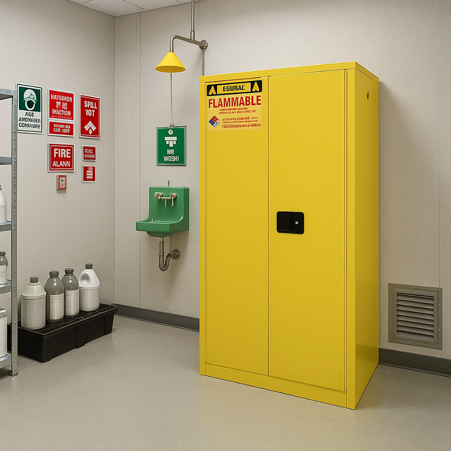 Cette armoire est un équipement essentiel pour la manipulation et le stockage sécurisé de substances inflammables.