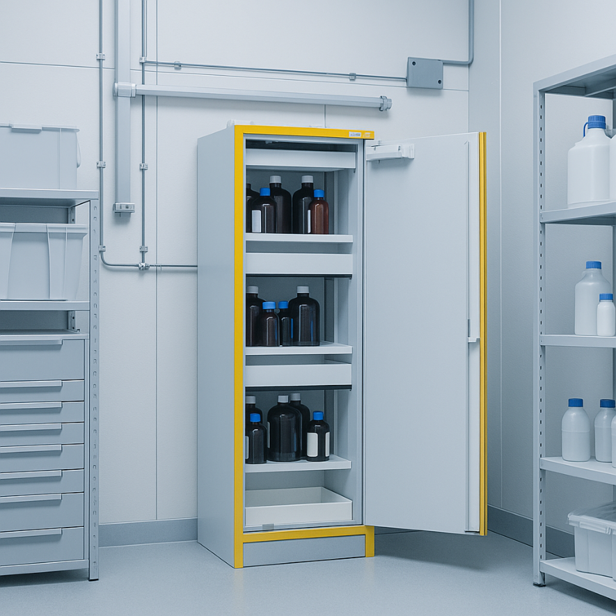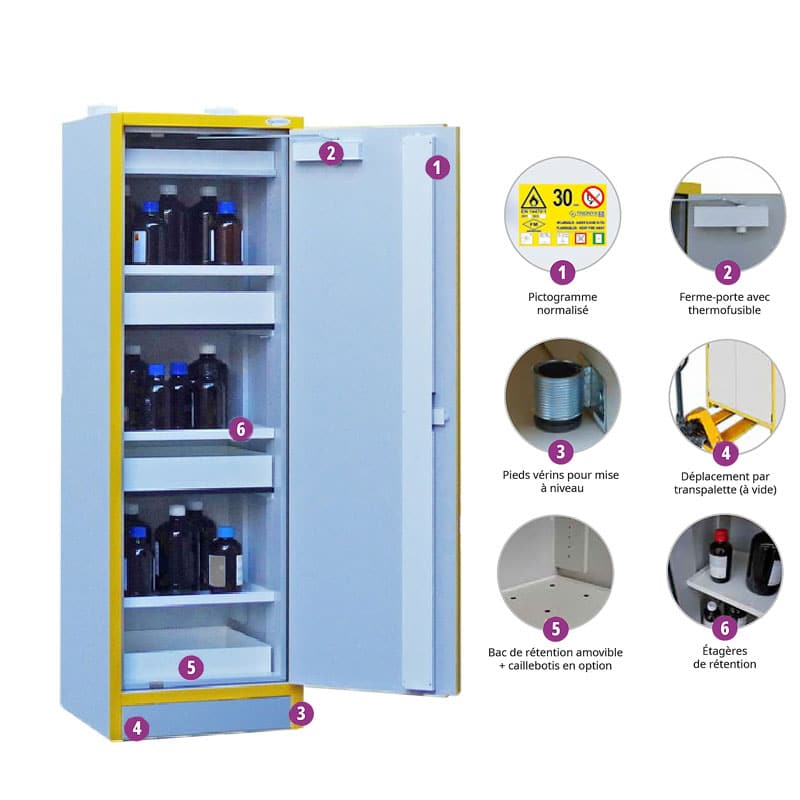 Spécialement adaptée pour le stockage sécuritaire de produits dangereux. Avec une capacité de 90 litres, cette armoire de production française est une solution parfaite pour les professionnels traitant des produits toxiques, inflammables ou autres agents chimiques à risque.