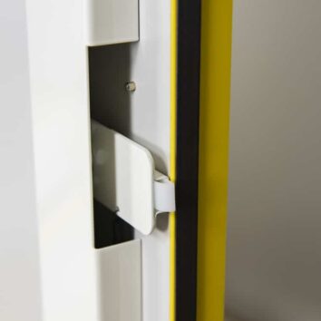 - Armoires à fermeture automatique, avec prépondérance des battants et maintien des portes en position ouverte grâce à des thermofusibles se déclenchant à partir de 47°C.