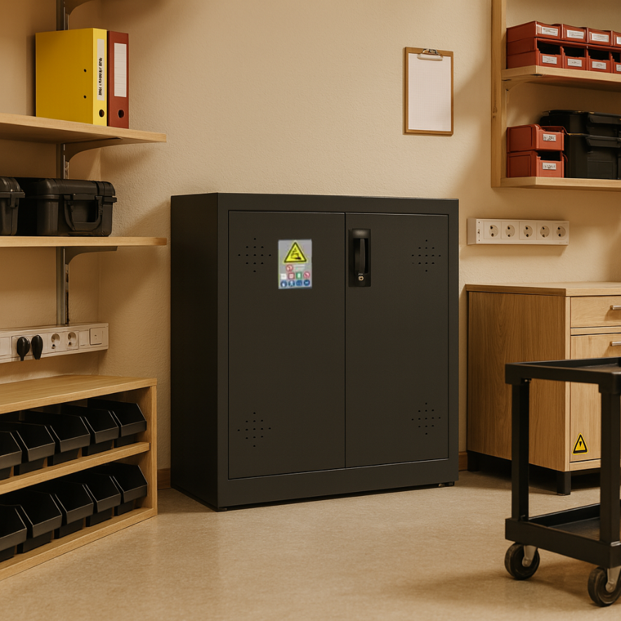 Armoire basse ECO pour le stockage et la recharge de Batterie Lithium-ion – à équiper – coloris noir – Trionyx